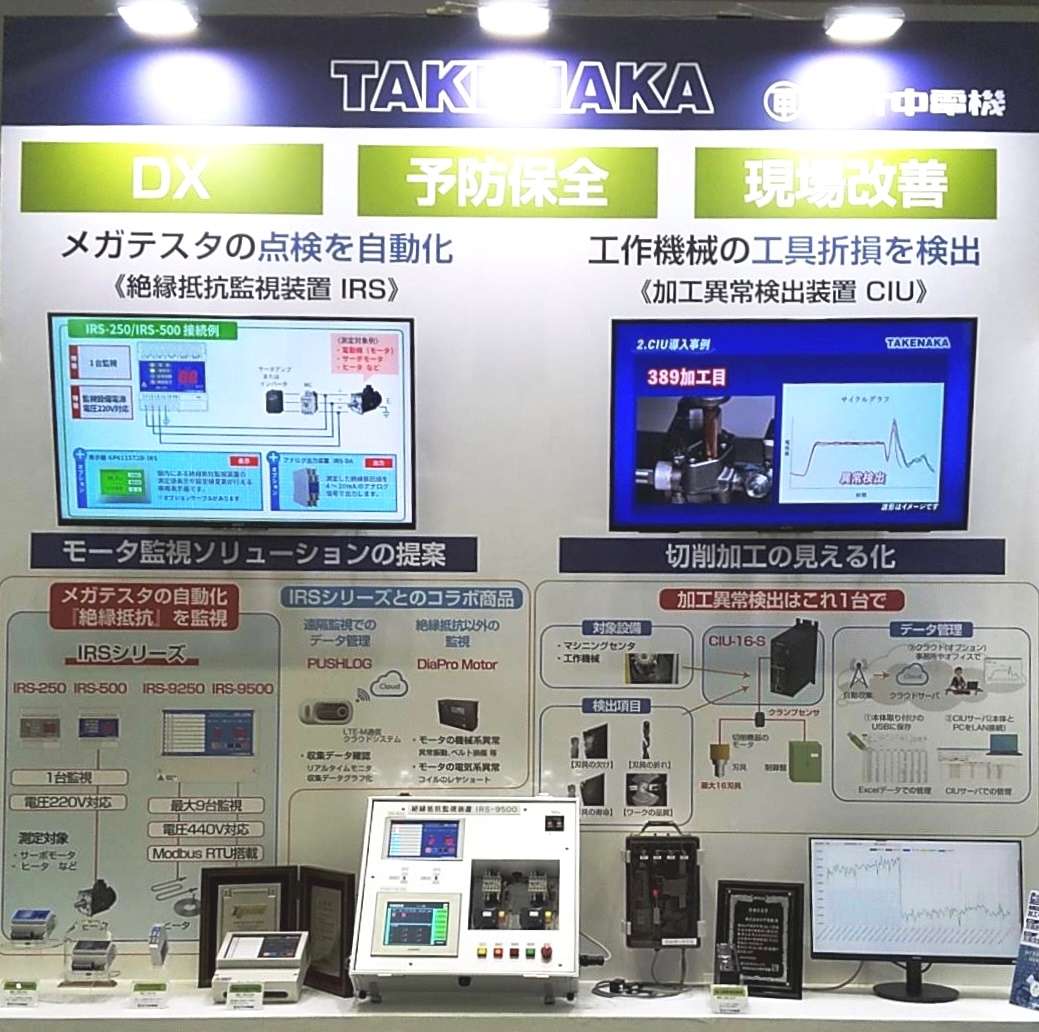 今回の展示会では、「予防保全」「現場改善」「DX」というテーマのもと自社製品である「絶縁抵抗監視装置IRS」と「加工異常検出装置CIU」を展示致しました。