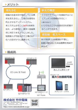 例えば、あんどんにタブレット端末を接続することで、いつでもどこでも生産状況を把握することができます。短期導入が可能なので工場のIoT化への足がかりに最適です。
