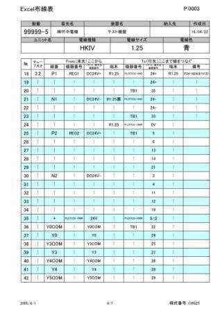 布線表は、電気回路図を基に作成し、配線を行う順番にFrom Toで表示しています。また、使用する電線や端末の圧着端子が表示されており、作業者の手を止める事無く配線作業が進められます。下の表が布線表の例です。