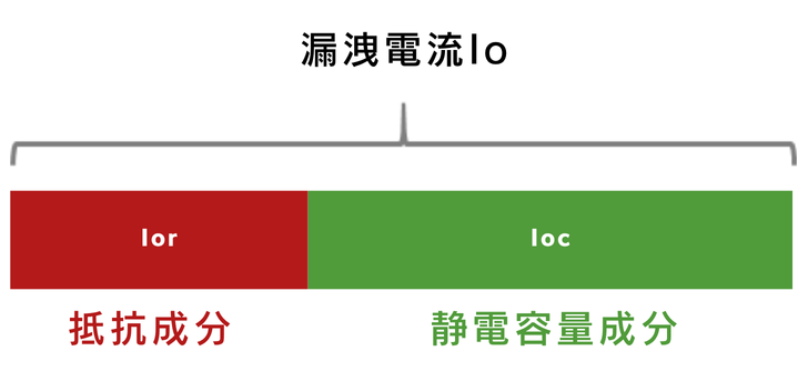 漏洩電流Ioには2つの成分があります(Ior成分,Ioc成分)